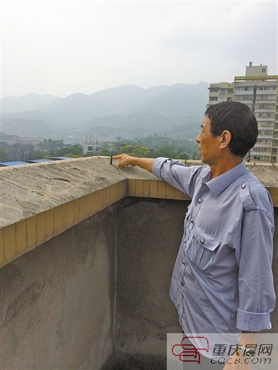 “你看嘛,避雷針就只有那么小點(diǎn),怎么避雷?”昨天,56歲的蔣洪倫站在2單元的頂樓,指著天臺圍墻上露出的小鐵片氣憤地說。這些小鐵片長約5、6厘米、寬約2厘米,早已被雨水侵蝕得銹跡斑斑。